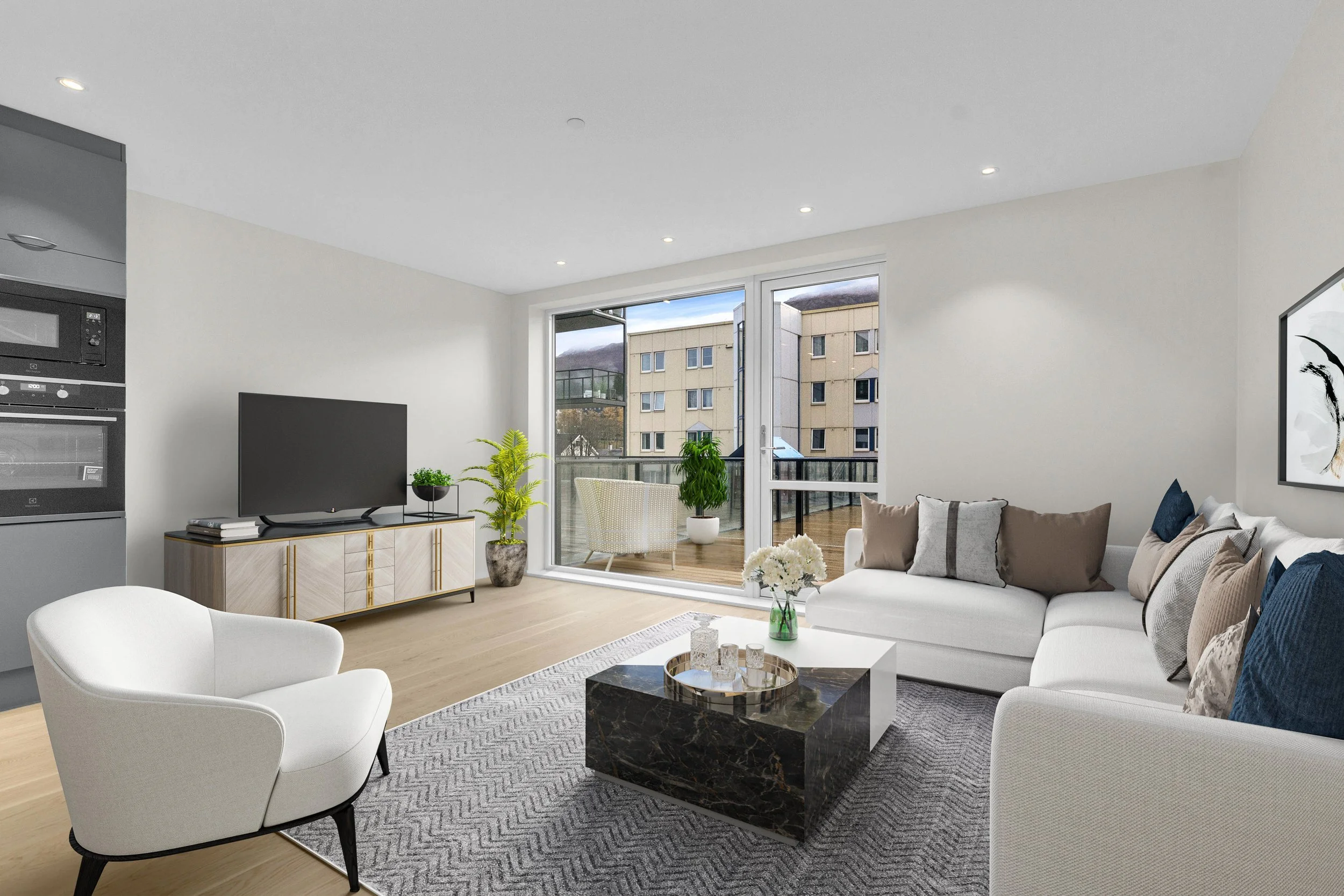 Boligfotografen leverer digital møblering av tomme rom. Dette egner seg godt for å vise møbleringsmulighetene et rom kan ha.